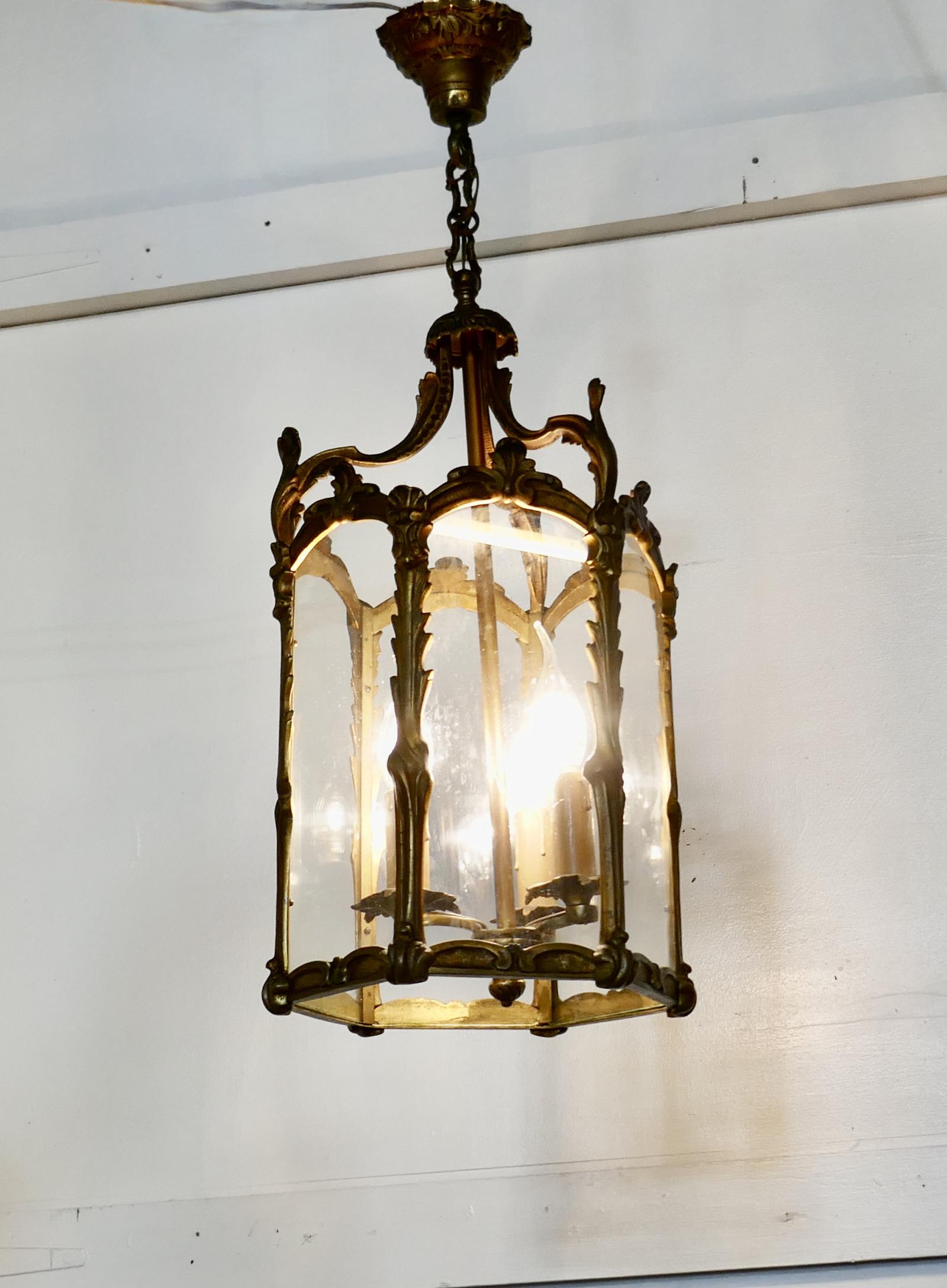Large French Rococo Brass Glass Lantern Hall Light