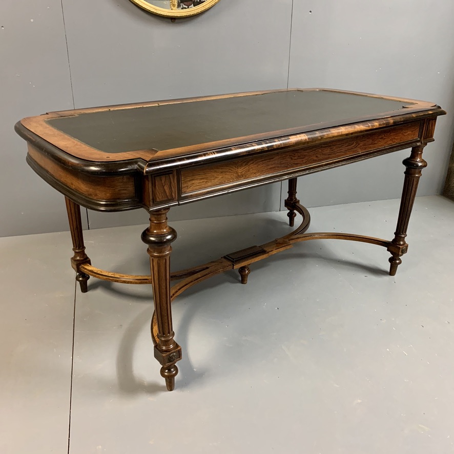 Large French Rosewood Bureau Plat Desk with Leather C.1880
