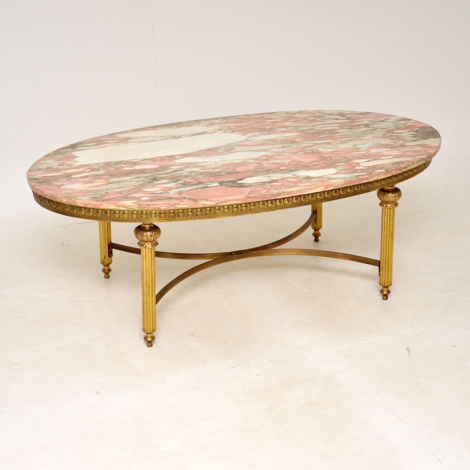 Large French Style Brass & Marble Coffee Table