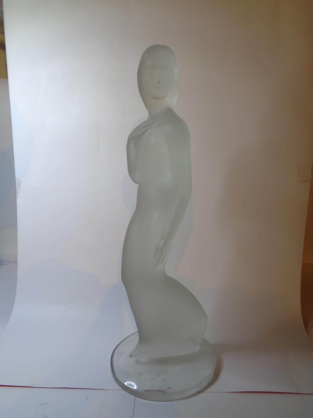 Large Frosted Glass Figurine of an Elegant Lady