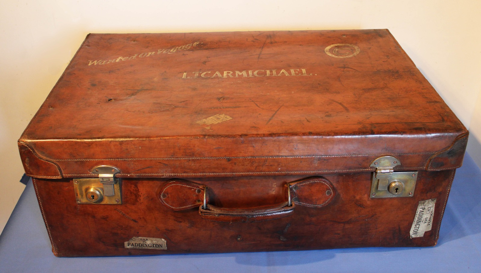Large, Full Hide Brown Leather Vintage Suitcase c.1920