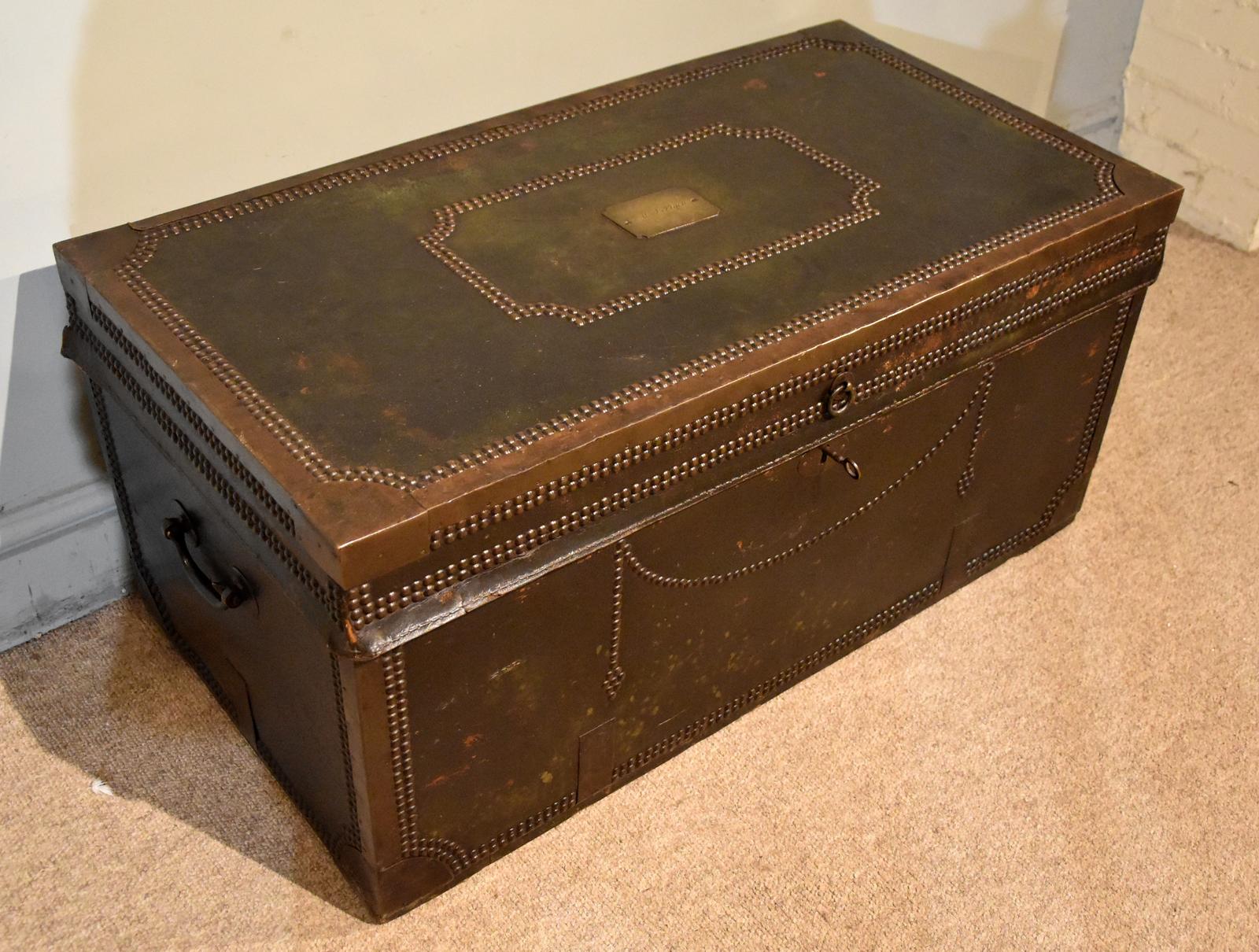 Large George III Green Leather, Camphor Wood Coaching Trunk (1 of 7)