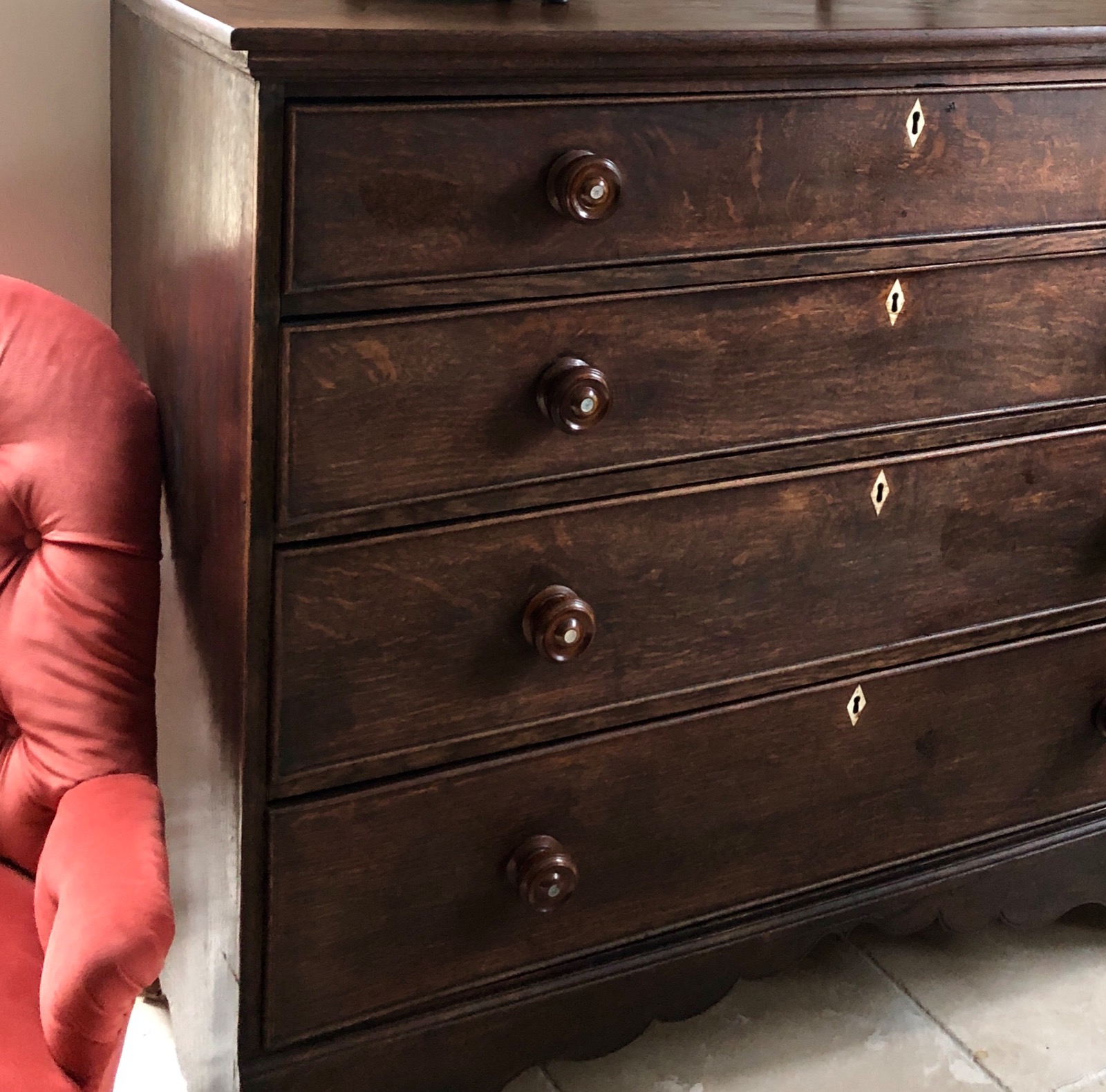 Large George Ill Oak Chest of Drawers with Mother of Pearl
