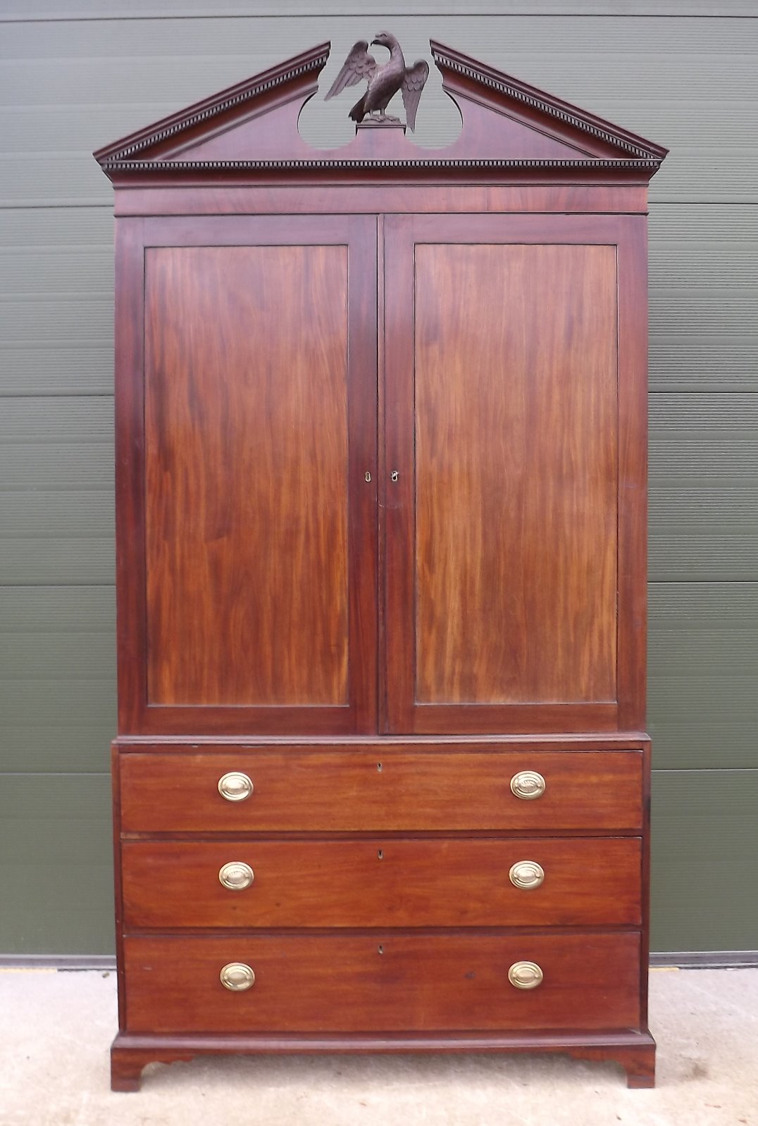 Large Georgian Mahogany Linen Press with Carved Eagle