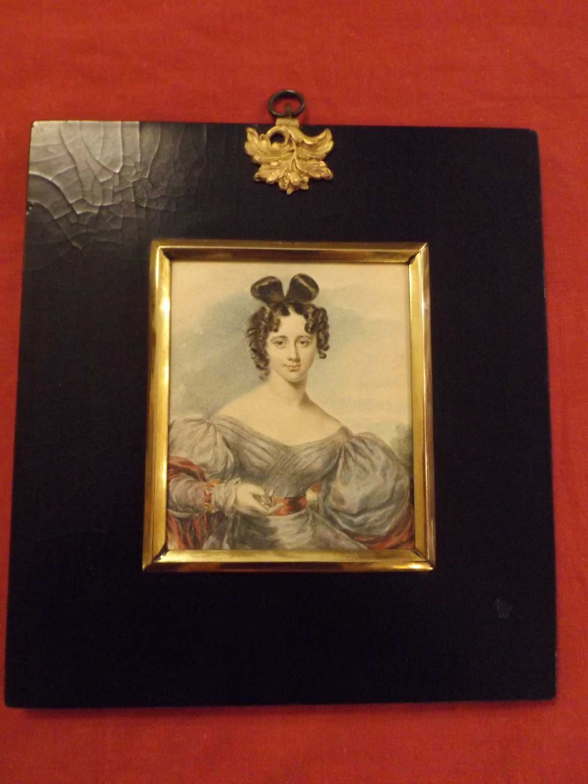 Large Georgian Miniature Portrait On Card in Papier Mache Frame