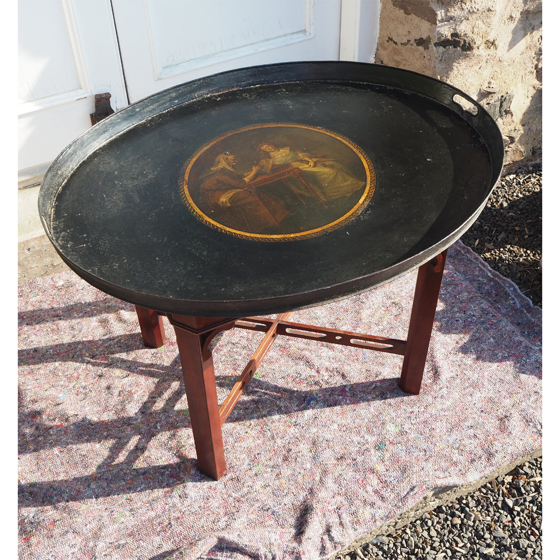 Large Georgian Toleware Tray on Stand