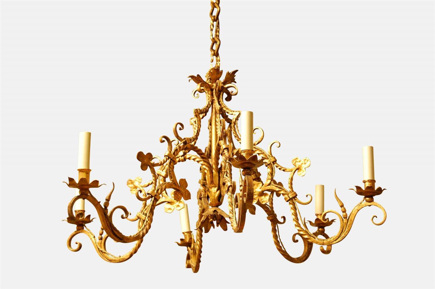 Large Gilded Wrought Iron Chandelier c.1930