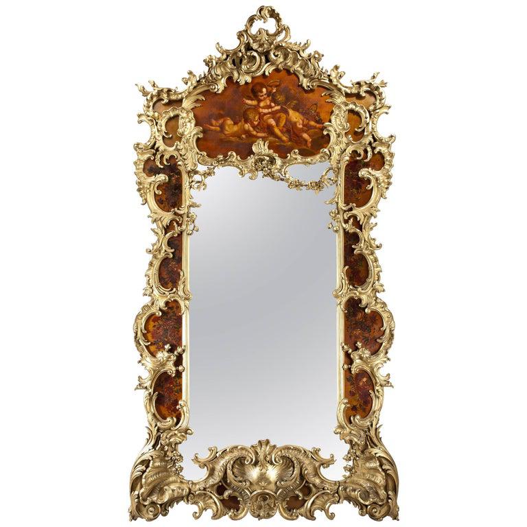 Large Giltwood & Vernis Martin Mirror by Louis Majorelle from the Dutch Royal