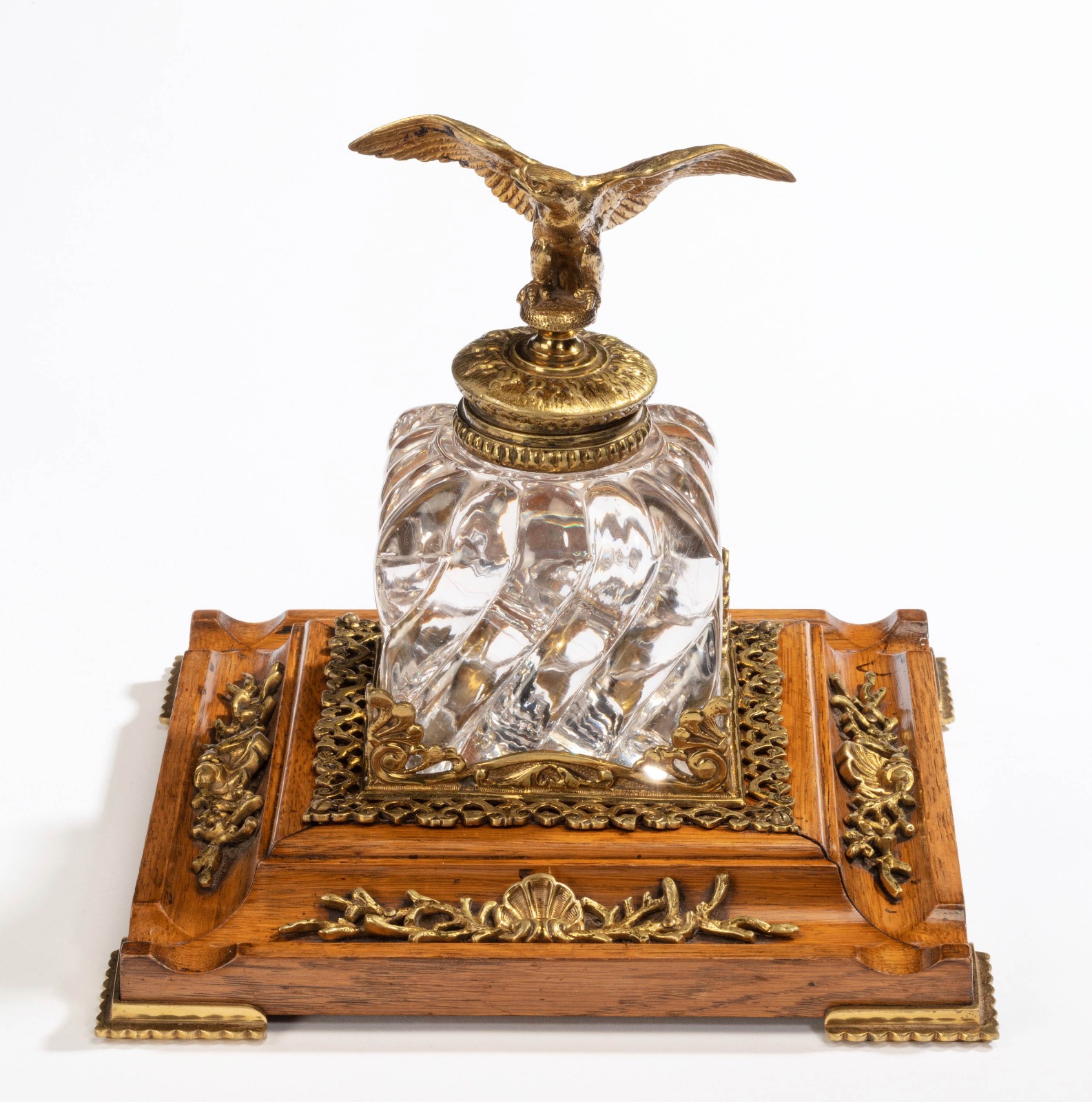 Large Glass & Gilt Bronze Gentleman's Inkwell c.1860