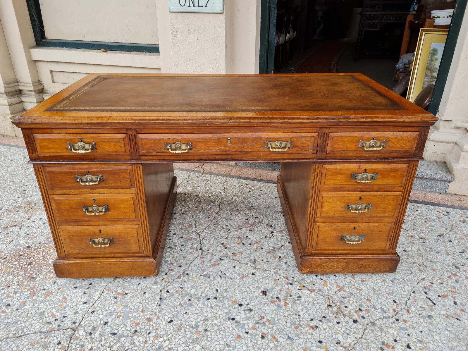 Large Golden Oak Antique Desk