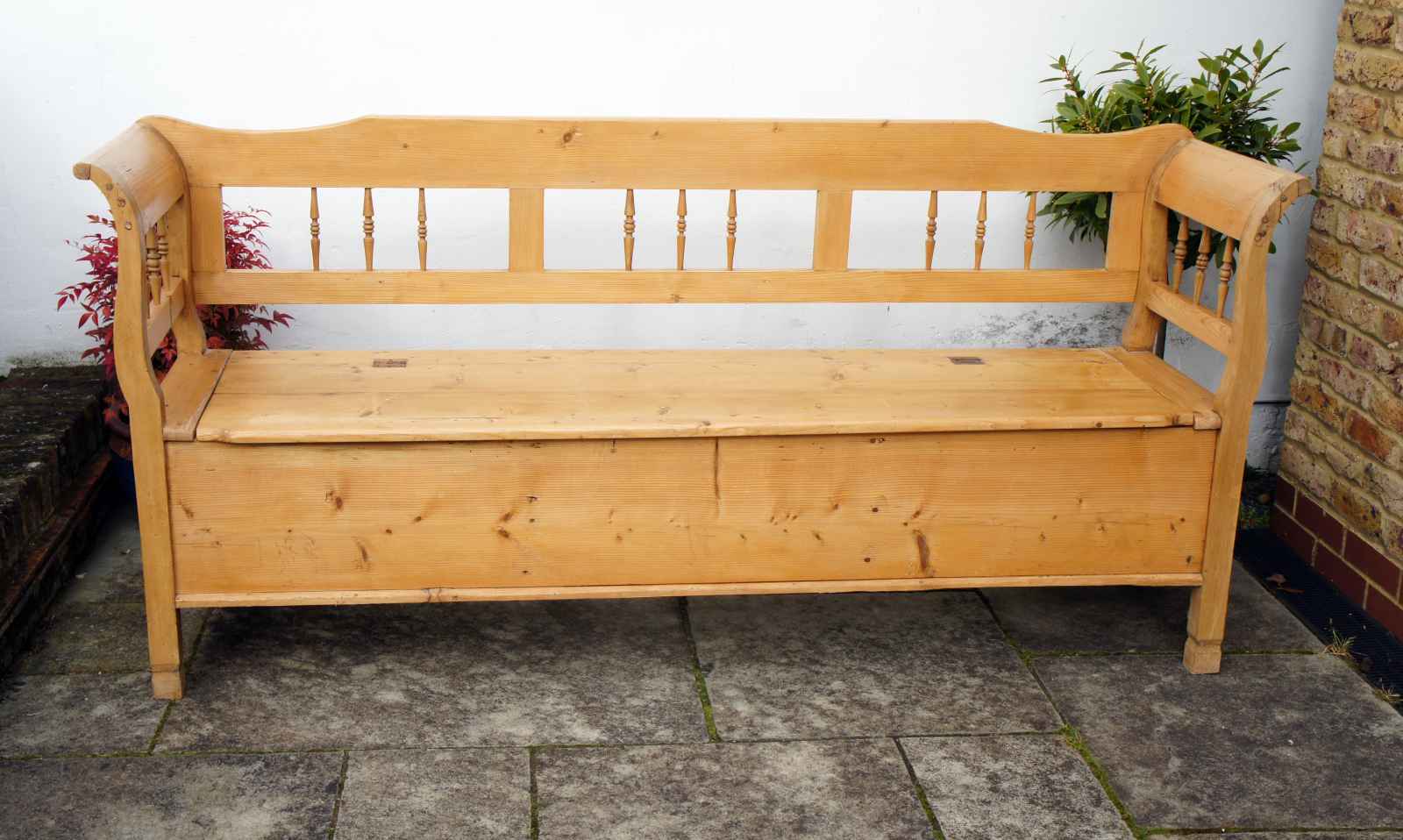 Large Good Quality 19th Century Pine Settle, Lift-up Storage & Bespoke Cushions