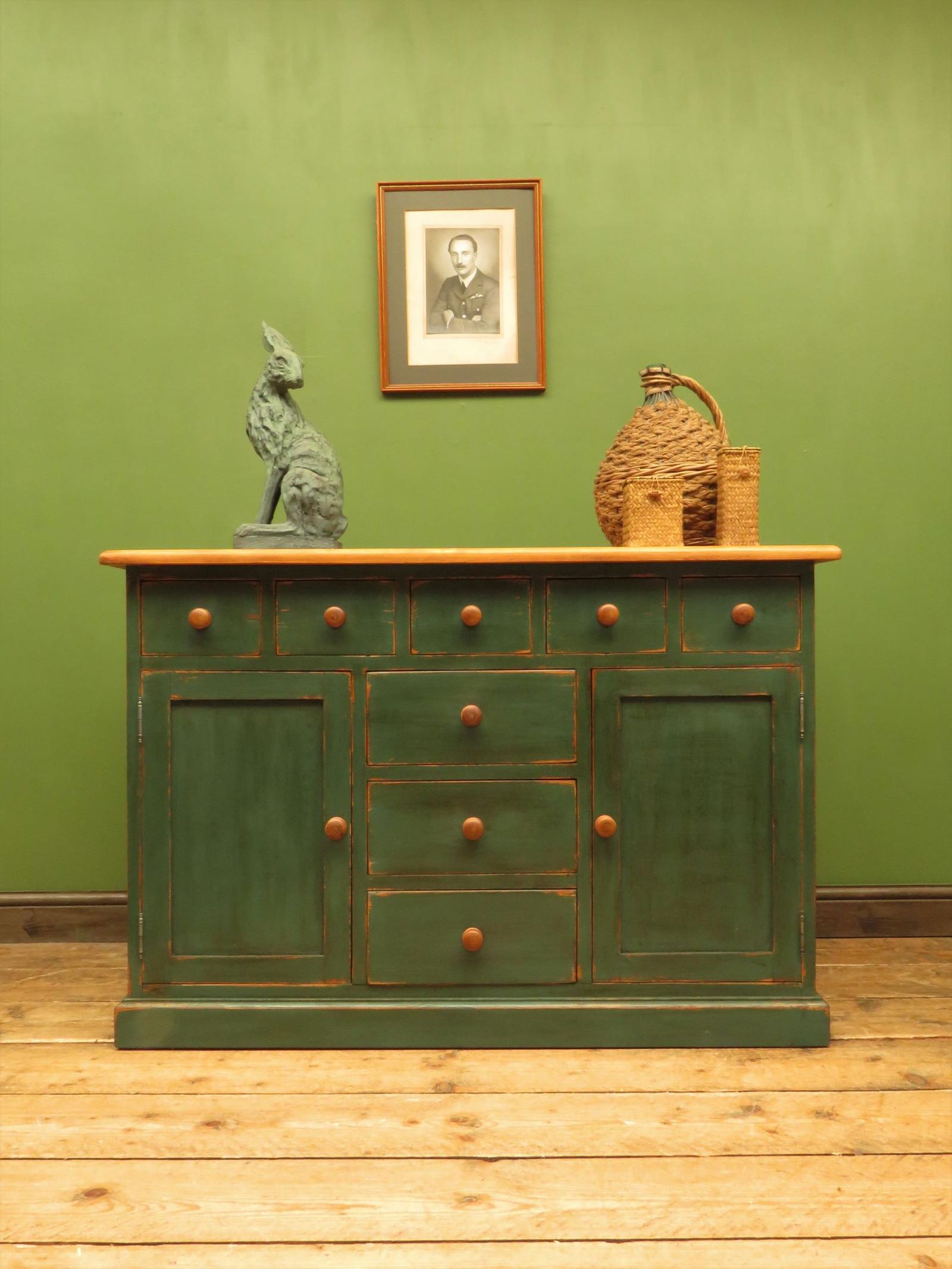 Large Green Painted Pine Kitchen Sideboard Unit With Drawers