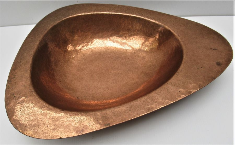 Large Hand Made Vintage Beaten Lacquered Copper Dish, Mid 20th Century