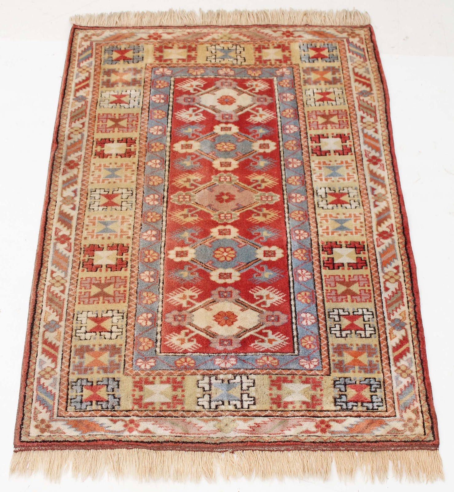 Large Hand Woven Wool Rug Cream & Terracotta (4" x 7") (1 of 1)