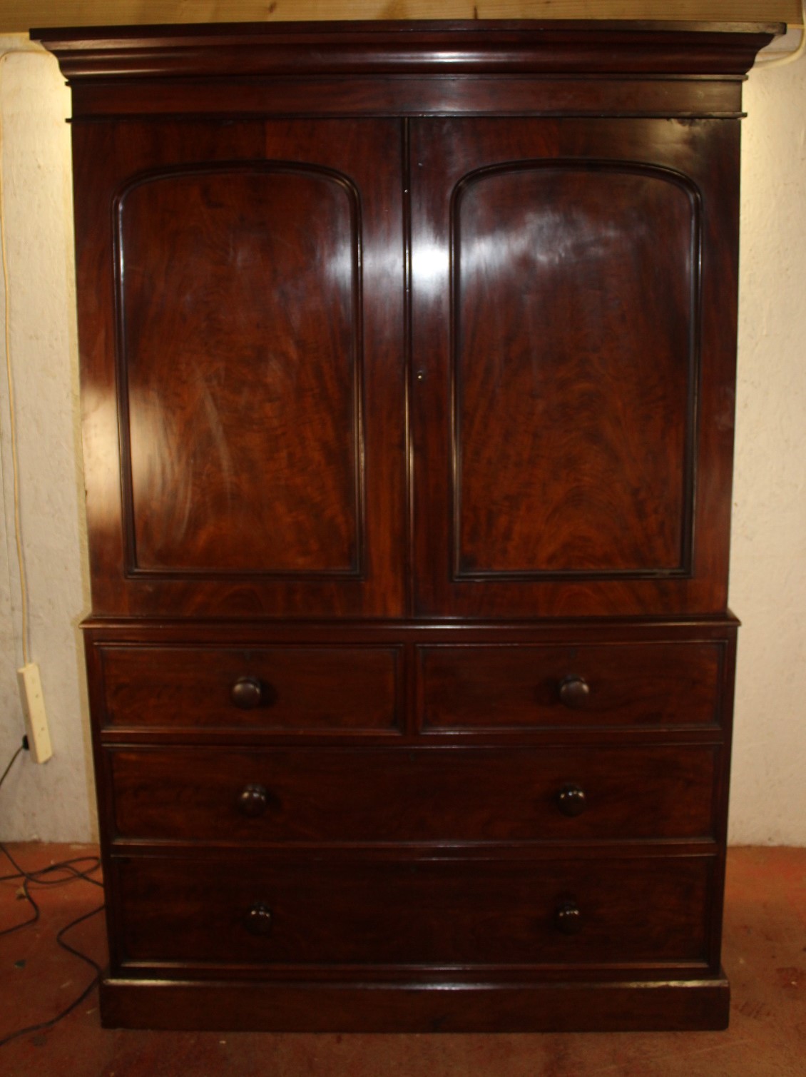 Large Handsome Dark Mahogany Linen Press with Original Slides c.1890