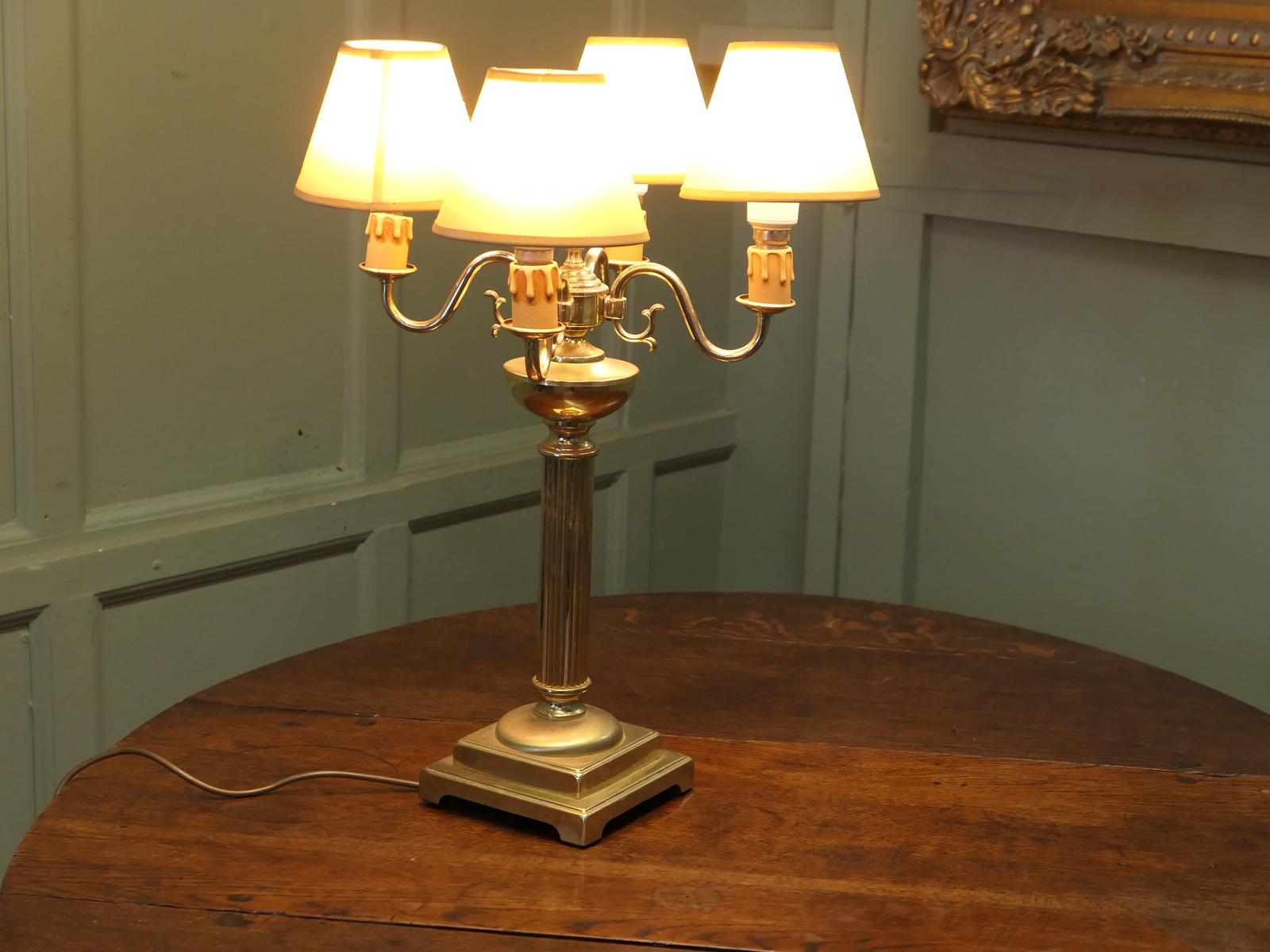 Large Heavy Brass 4 Branch Table Lamp