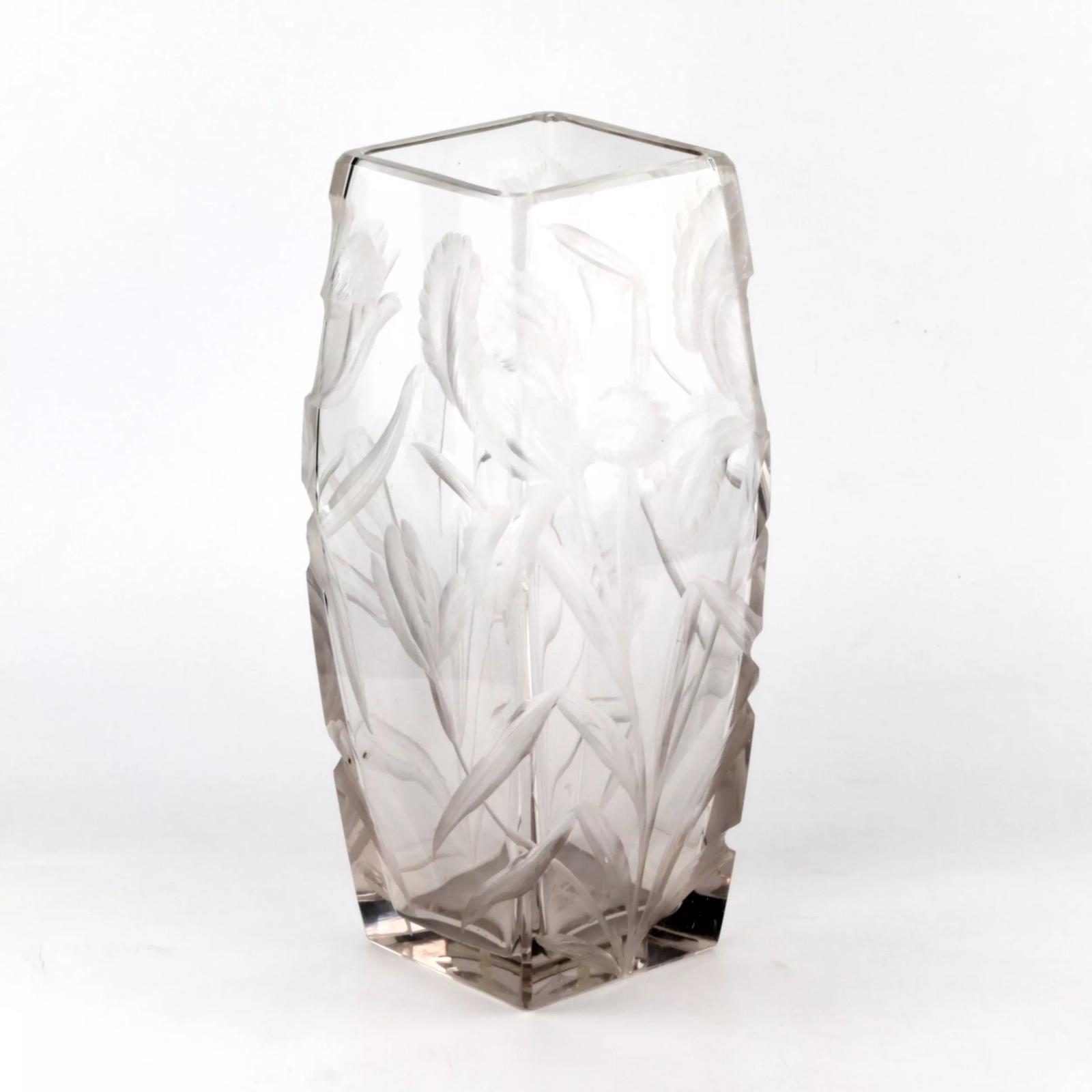 Large, heavy, crystal vase with luxurious irises.