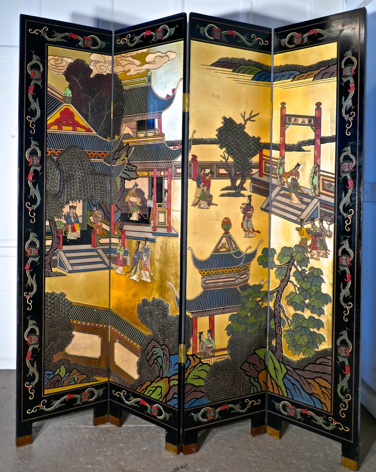Large Heavy Decorated Japanese Lacquer Room Divider Screen