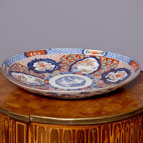 Large Imari Charger Decorated in Typical Imari Dark Blue & Rust Red Colours