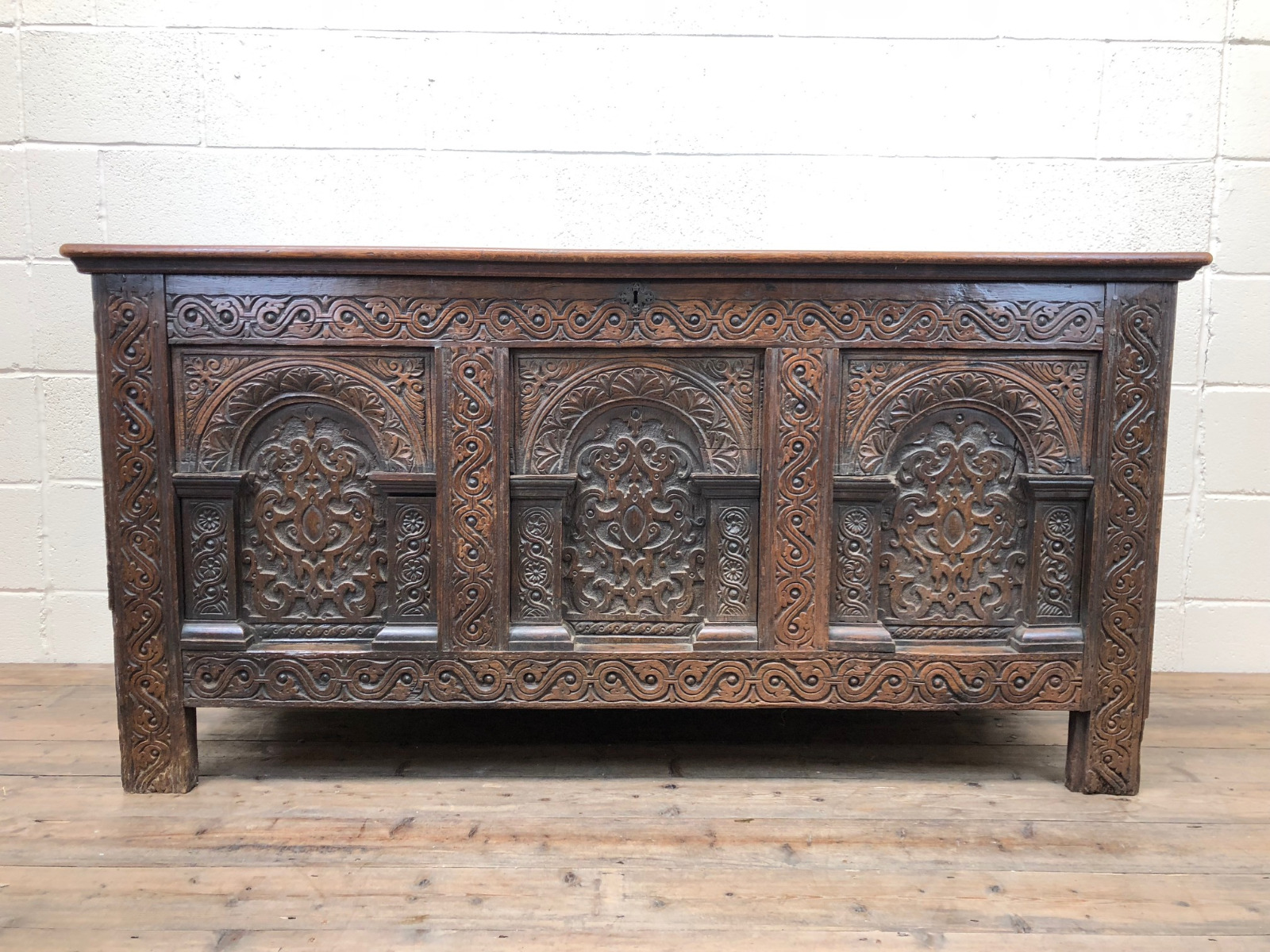 Large & Impressive 17th Century Carved Oak Coffer Chest (1 of 16)