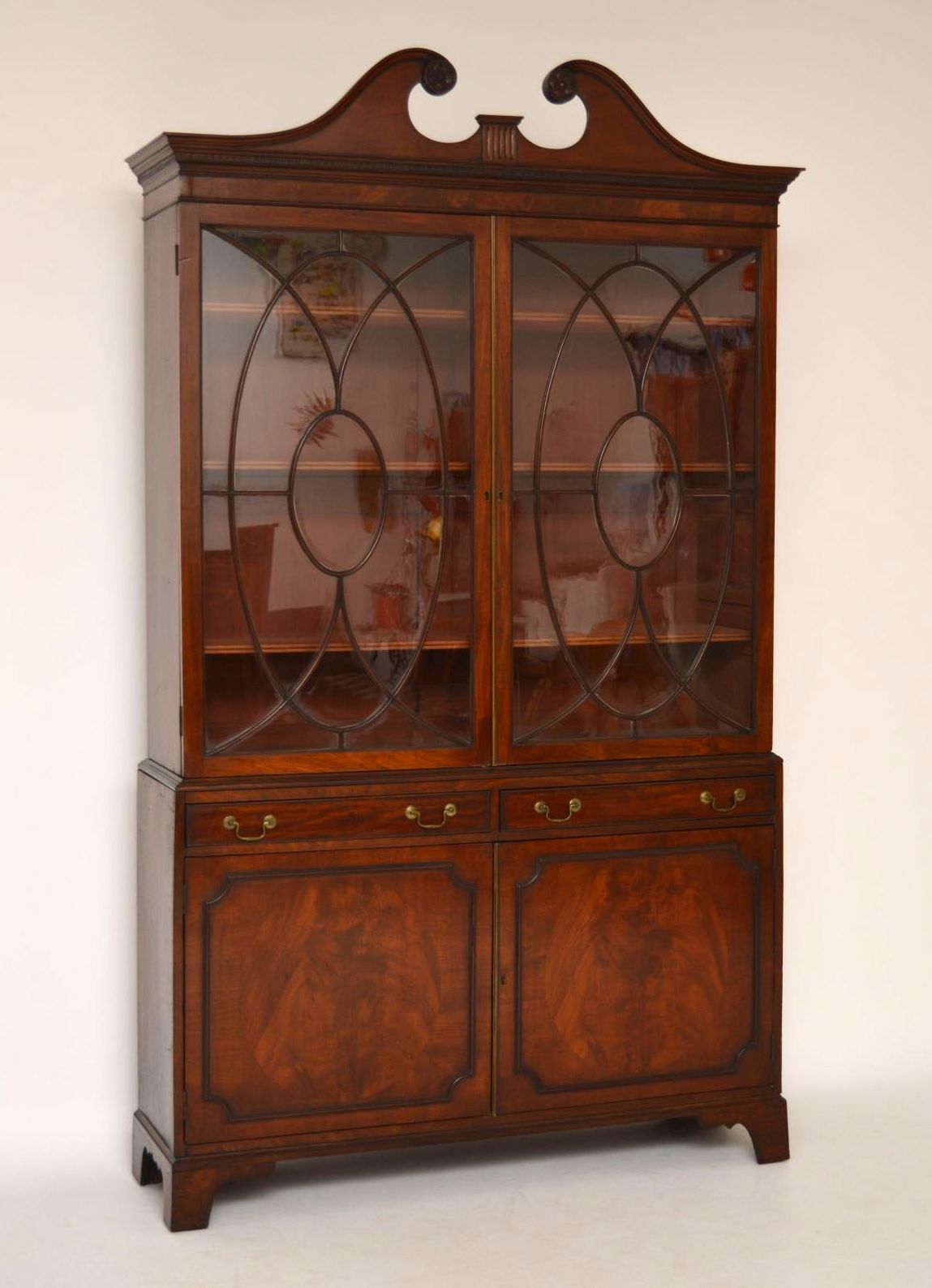 Large Impressive Antique Mahogany Glazed Bookcase on Cupboard