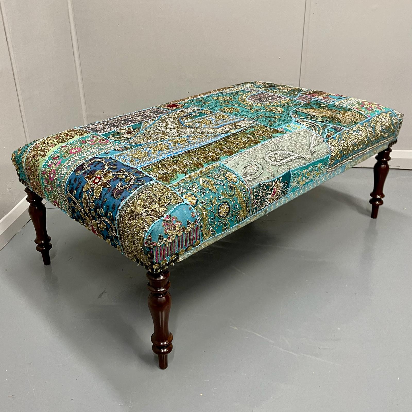 Large Indian Patchwork Tapestry Footstool