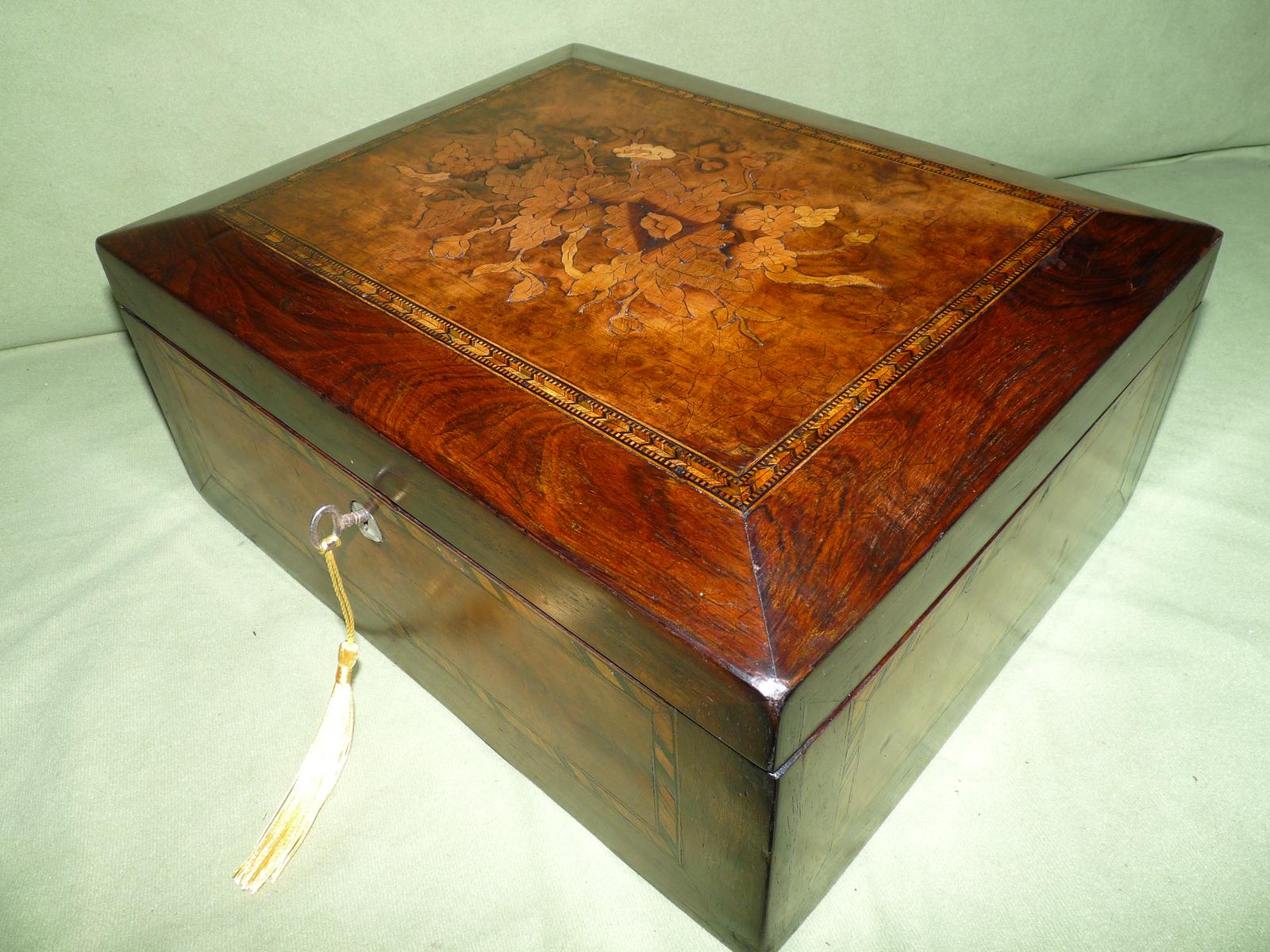 Large Inlaid Burr Walnut & Rosewood Jewellery / Table Box