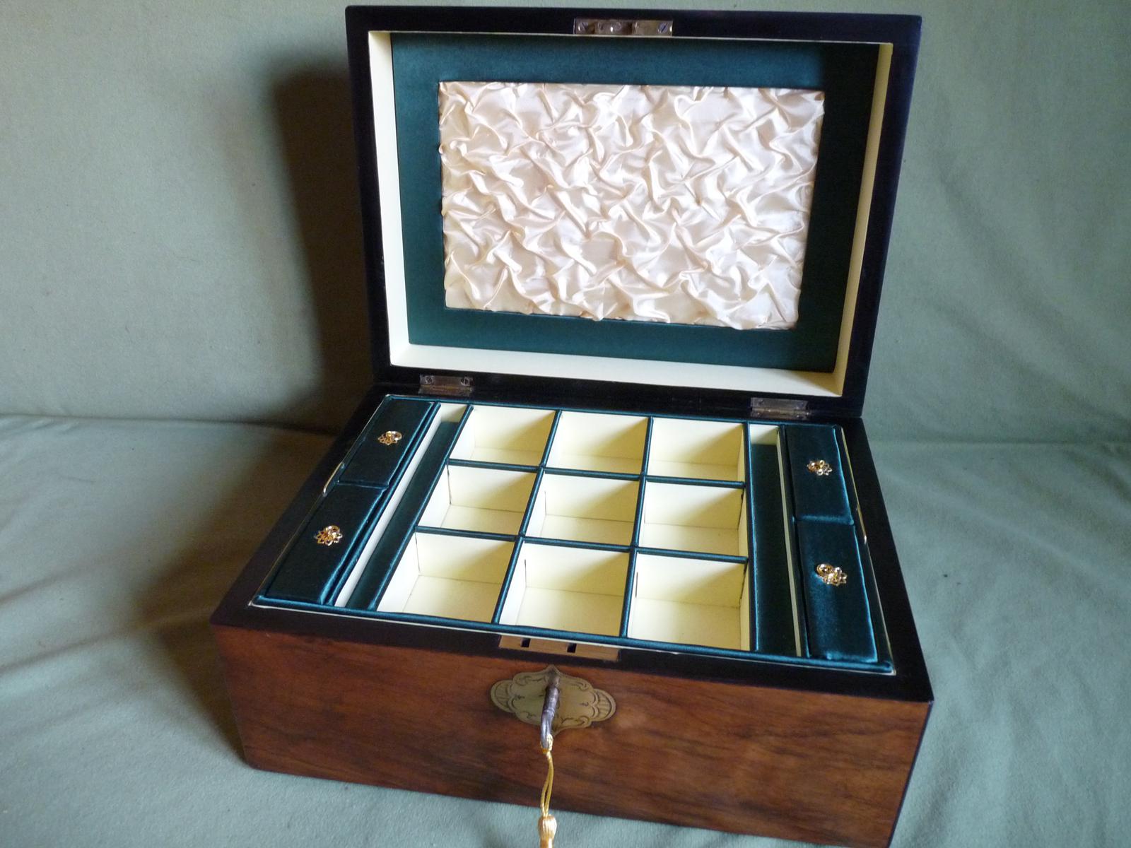Large Inlaid Figured Walnut Jewellery Box - Plush Interior c.1875