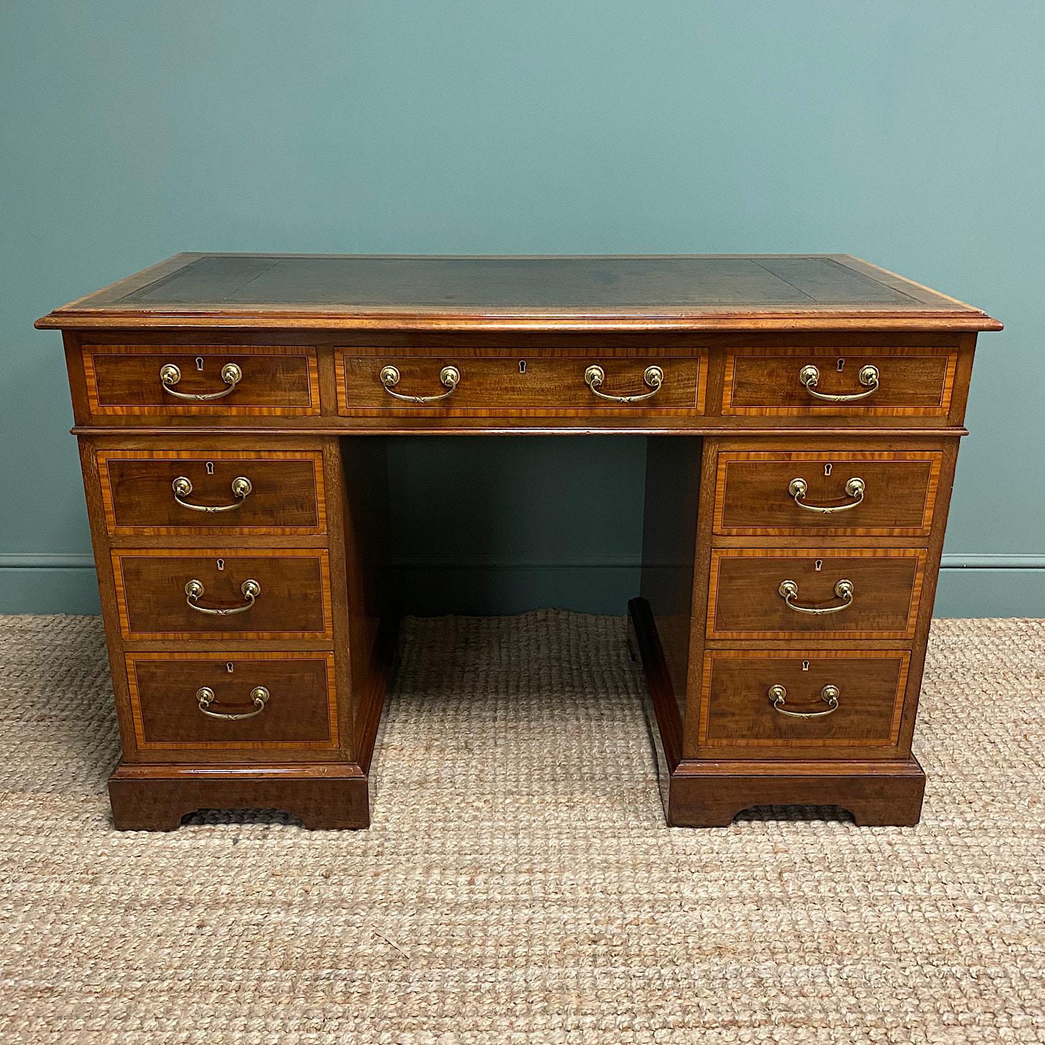 Large Inlaid Mahogany Victorian Antique Pedestal Desk