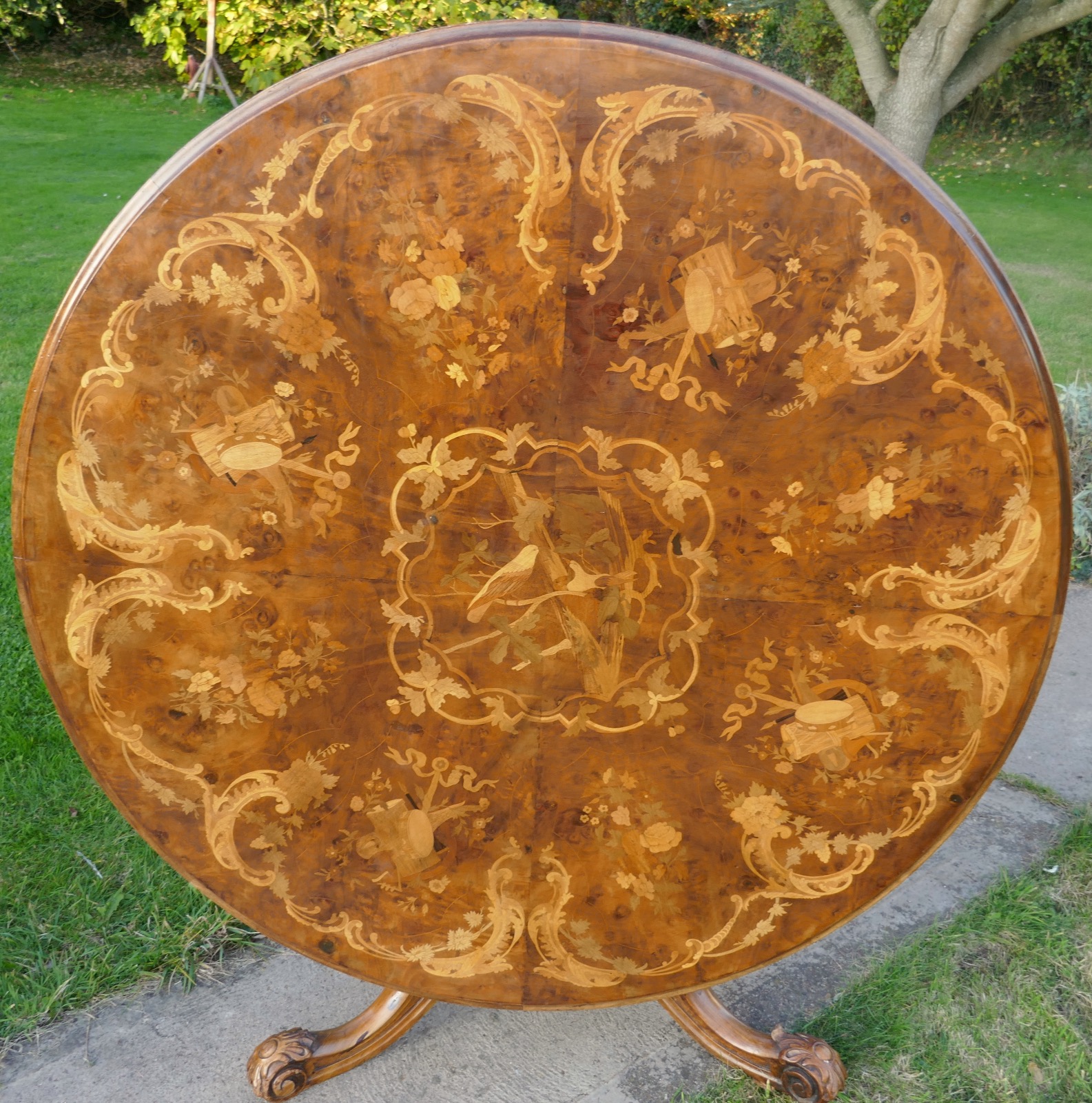 Large Inlaid Musical Theme Burr Walnut Marquetry Centre Dining Table