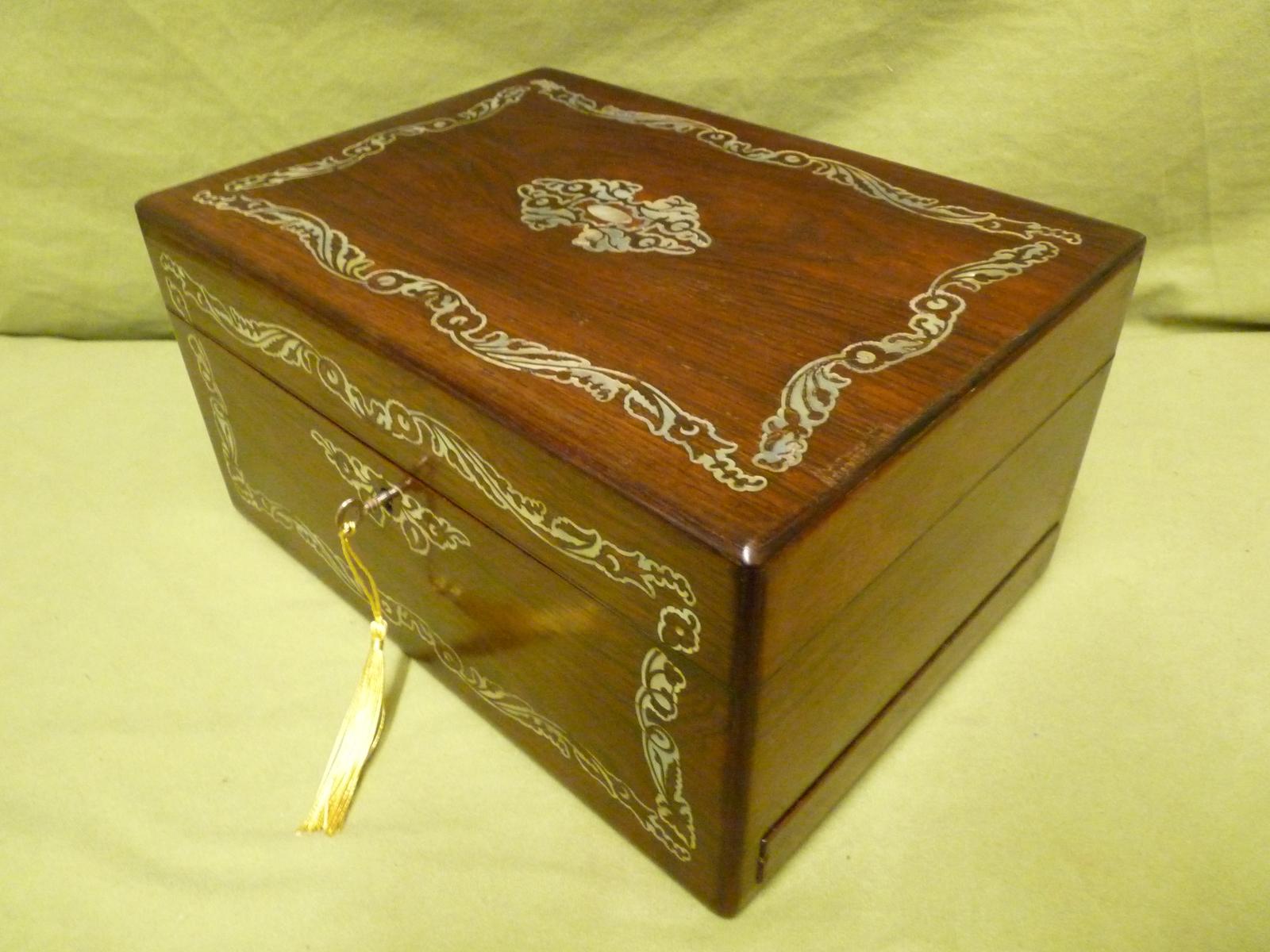 Large Inlaid Rosewood Jewellery Box + Drawer c.1860