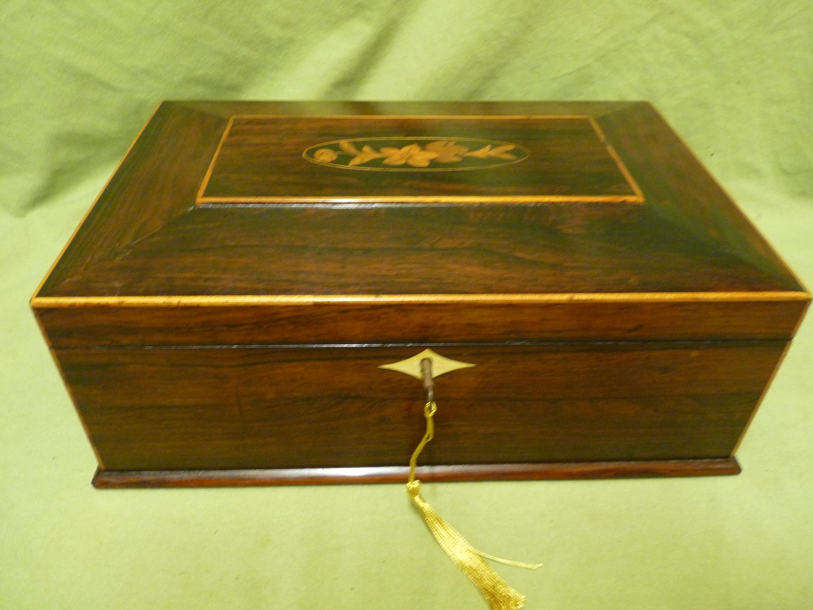 Large Inlaid Rosewood Jewellery Box + Side Drawer c.1860