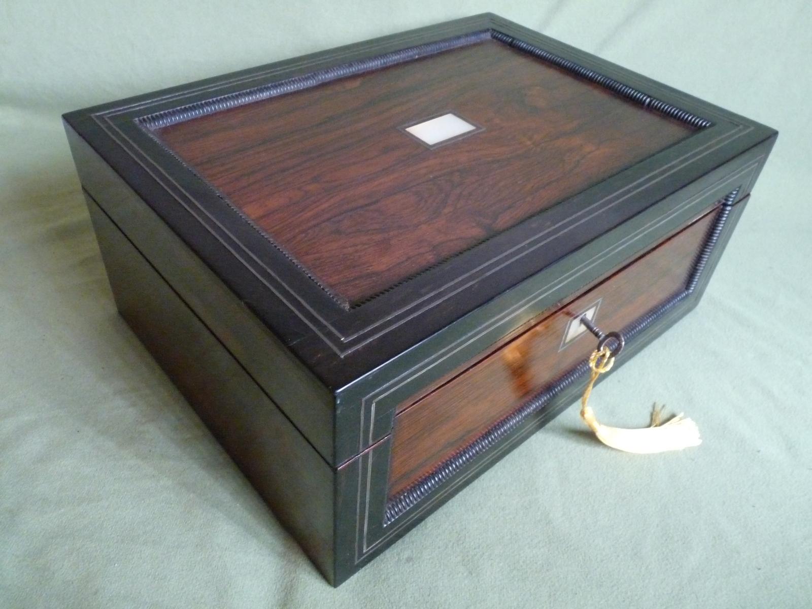 Large Inlaid Rosewood Jewellery / Work Box + Tray c.1840