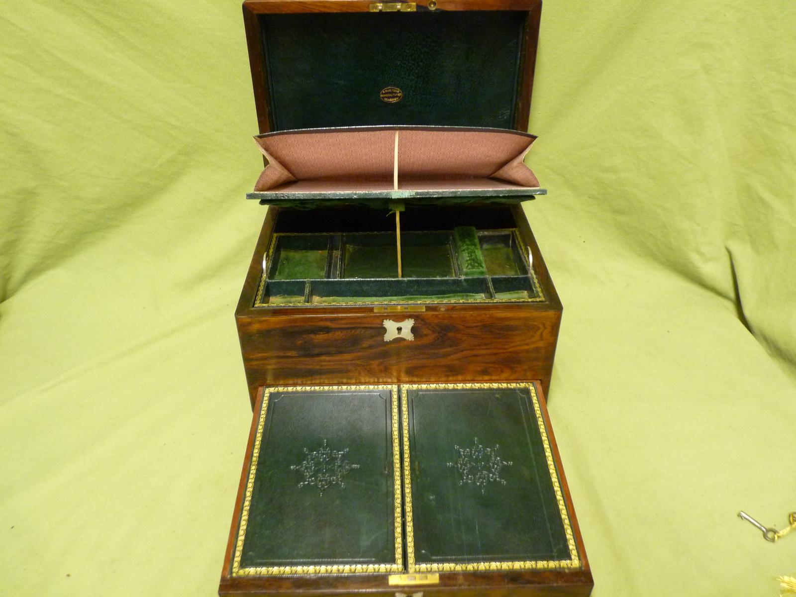 Large Inlaid Rosewood Triple Layer Jewellery Box by Woolfield. C1850