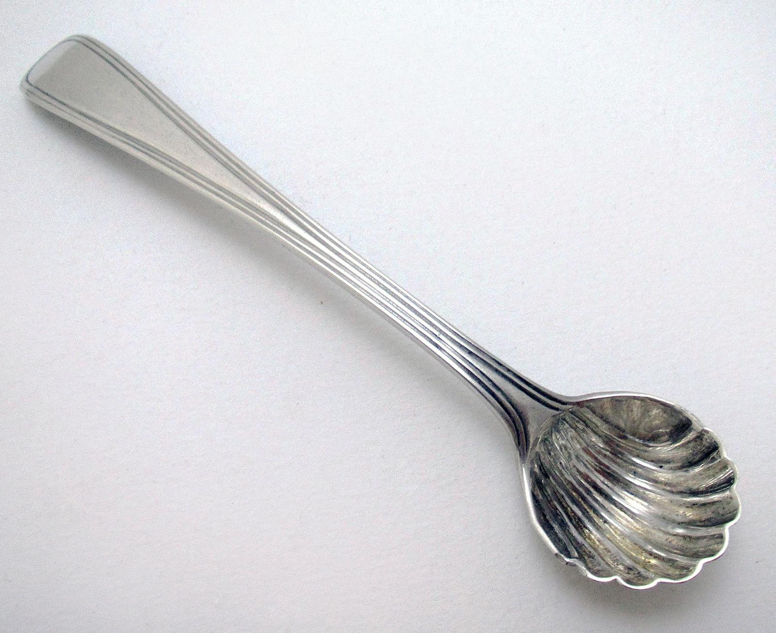 Large Irish Antique Georgian Solid Sterling Silver Salt Mustard Pot Condiment Spoon, James England 1820