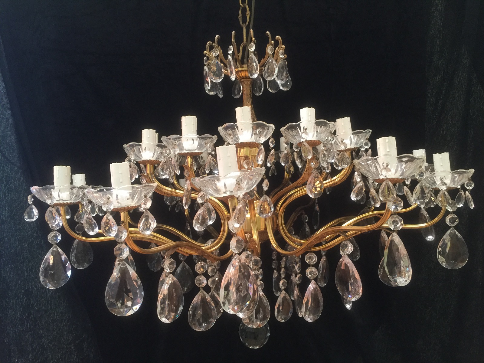 Large Italian Two Tiered Brass & Crystal Chandelier c.1920