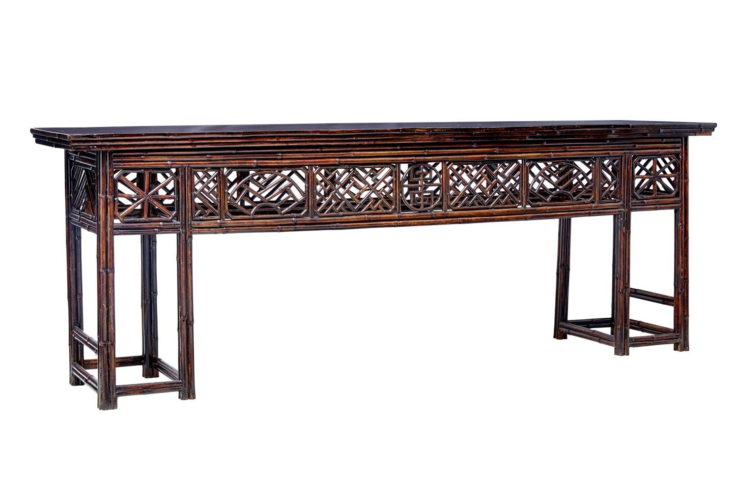 Large Late 19th Century Chinese Cane & Lacquer Console Table (1 of 1)