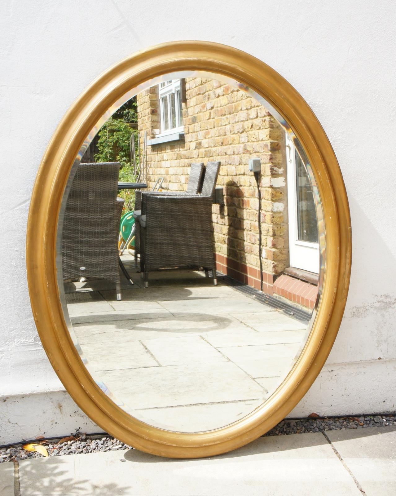 Large Late Victorian Oval Gesso / Giltwood Overmantle Mirror