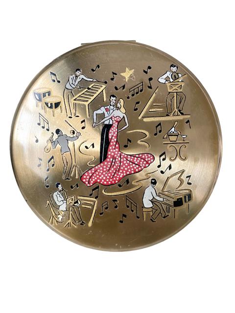 Large Le Rage Dancers & Musicians Musical Themed Powder Compact c.1940