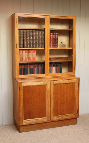Large Light Oak Cabinet Bookcase, English c.1961 (1 of 1)