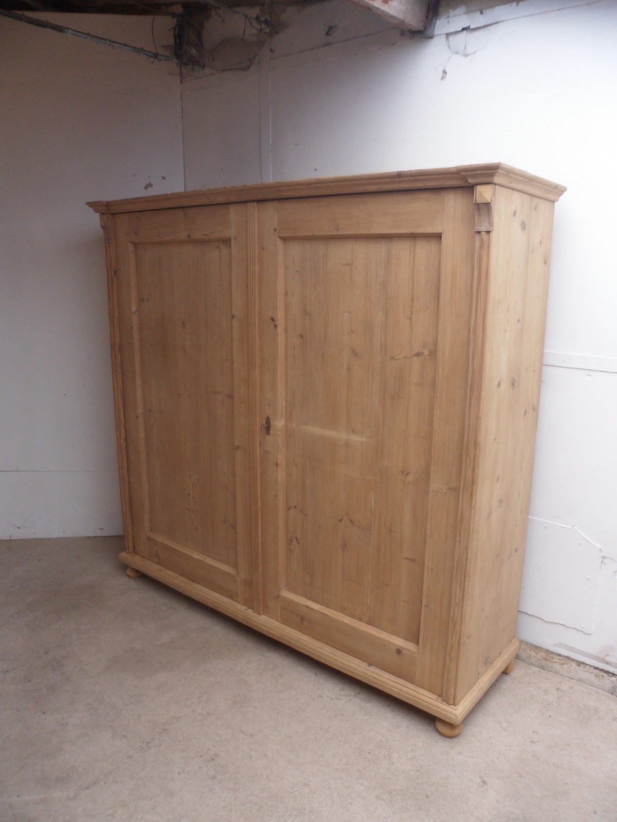 Large / Low Victorian Antique Pine 2 Door Knockdown Wardrobe to paint / wax