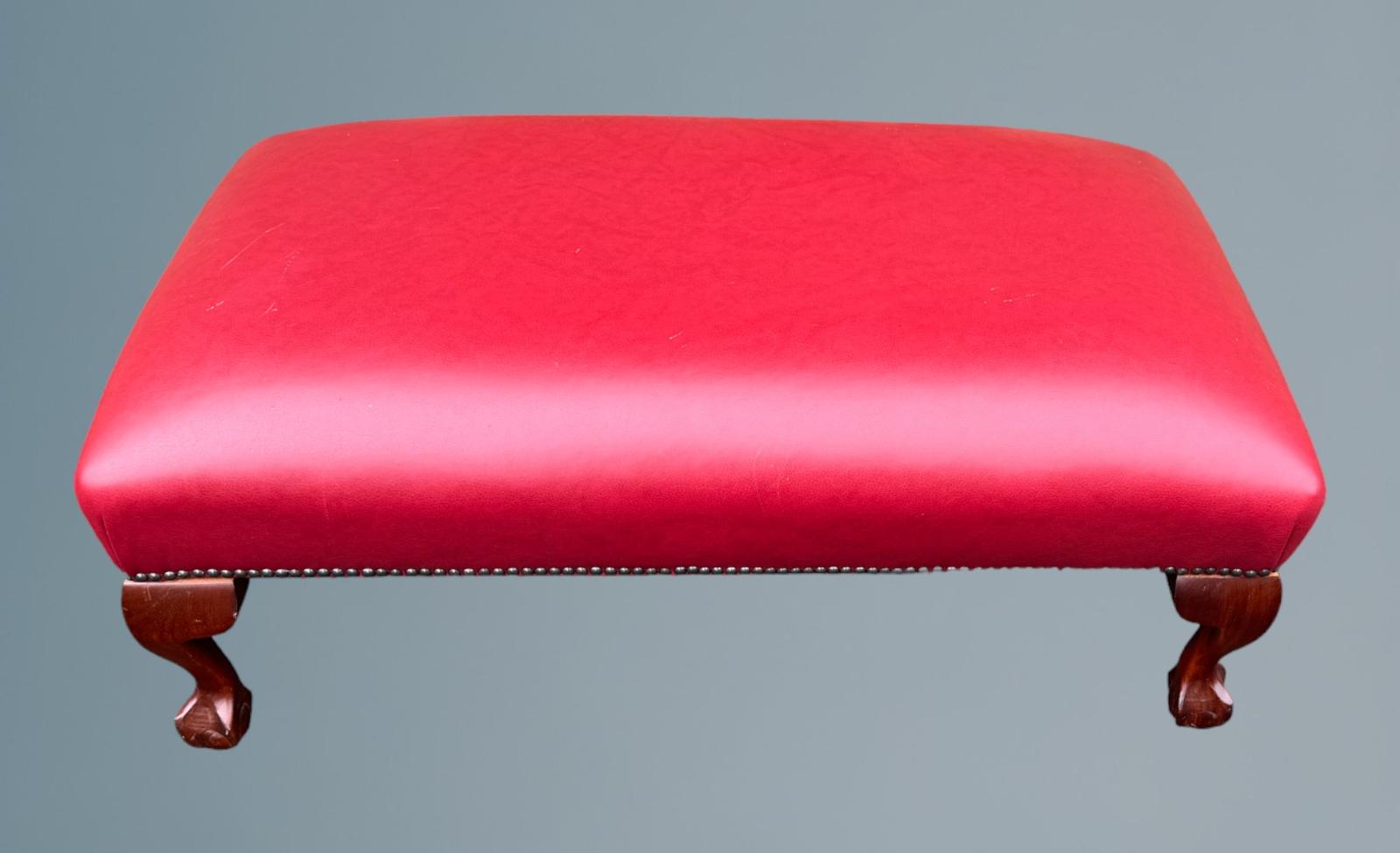 Large Mahogany & Faux Leather Stool (1 of 11)