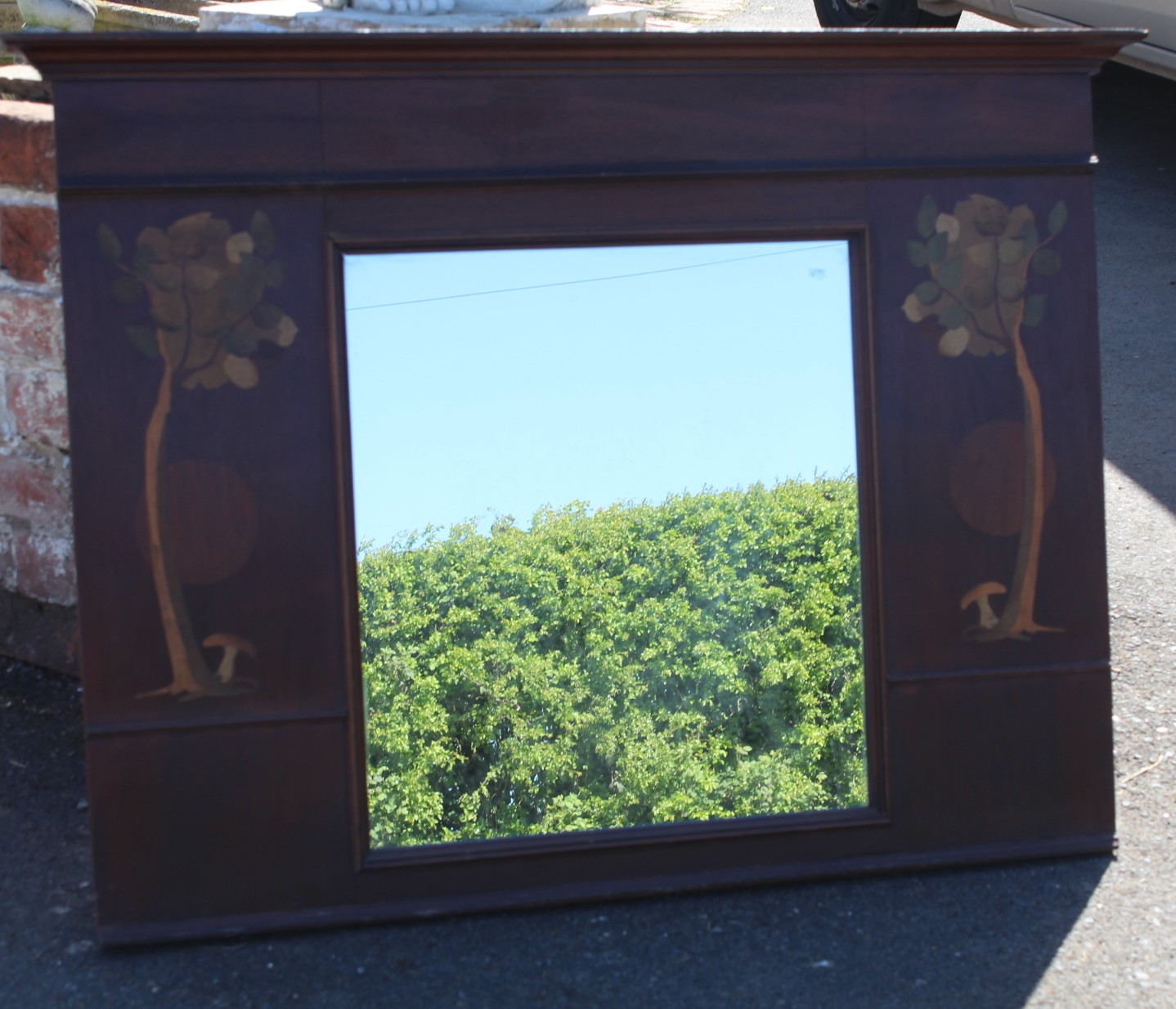 Large Mahogany Framed Arts & Crafts Mirror with Trees