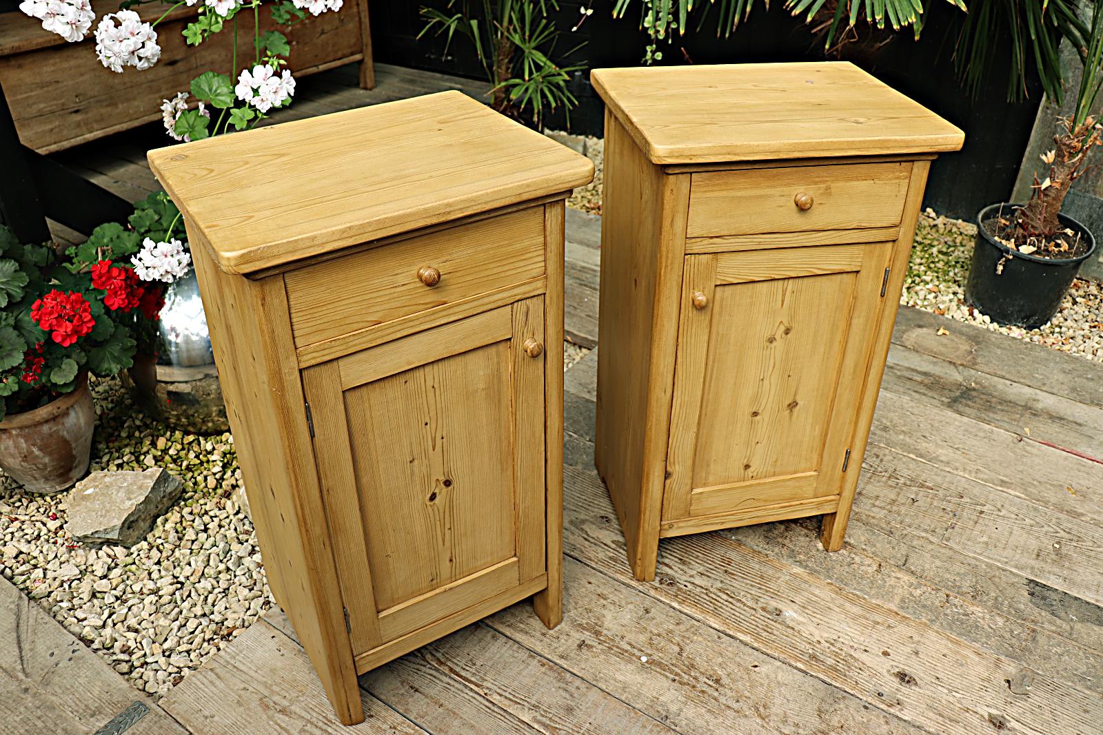 Large Matching Pair Old Antique Pine Bedside Cabinets / Cupboards. We Deliver!