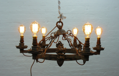Large Metal Chandelier with Shield & Knights Helmet Decoration (1 of 8)