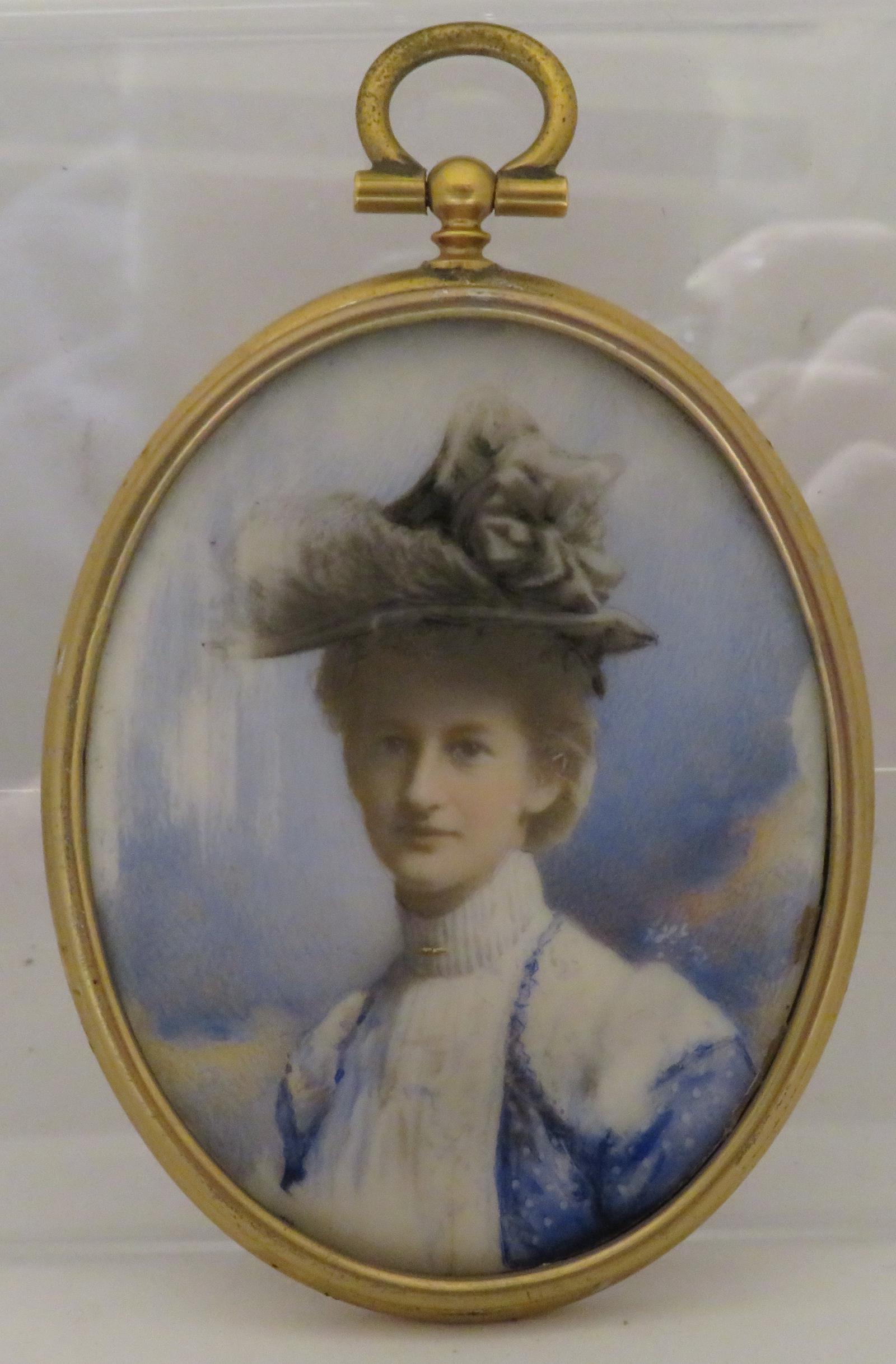 Large Miniature Portrait Edwardian Lady Fashionable Hat c.1910