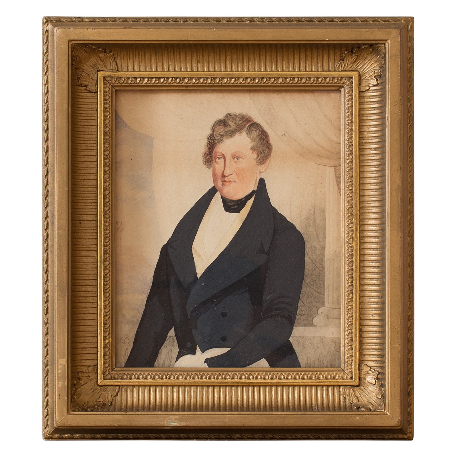 Large Miniature Portrait of a British Gentleman Before a Castle