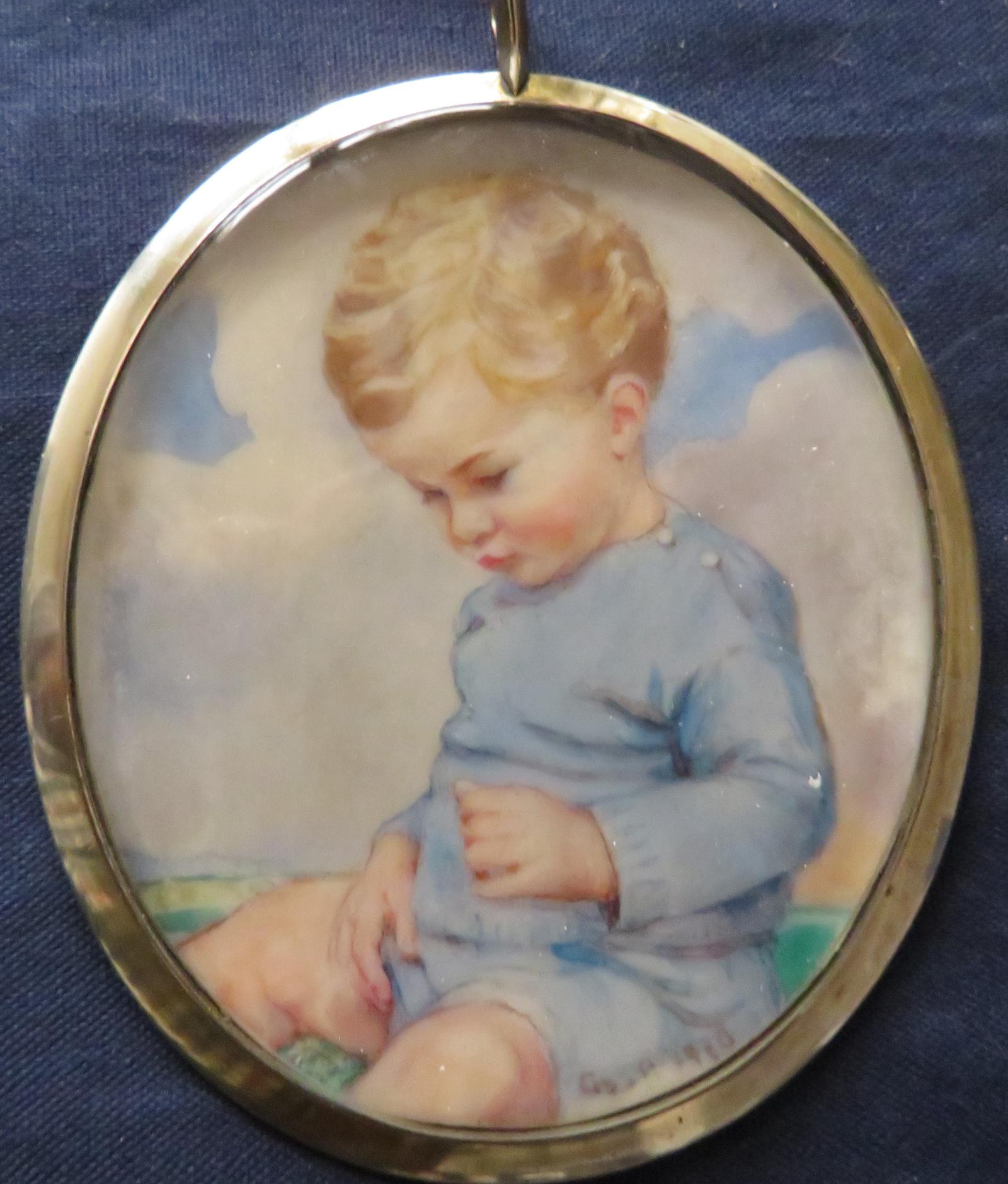 Large Miniature Portrait Young Boy 1920 Dated & Initialled