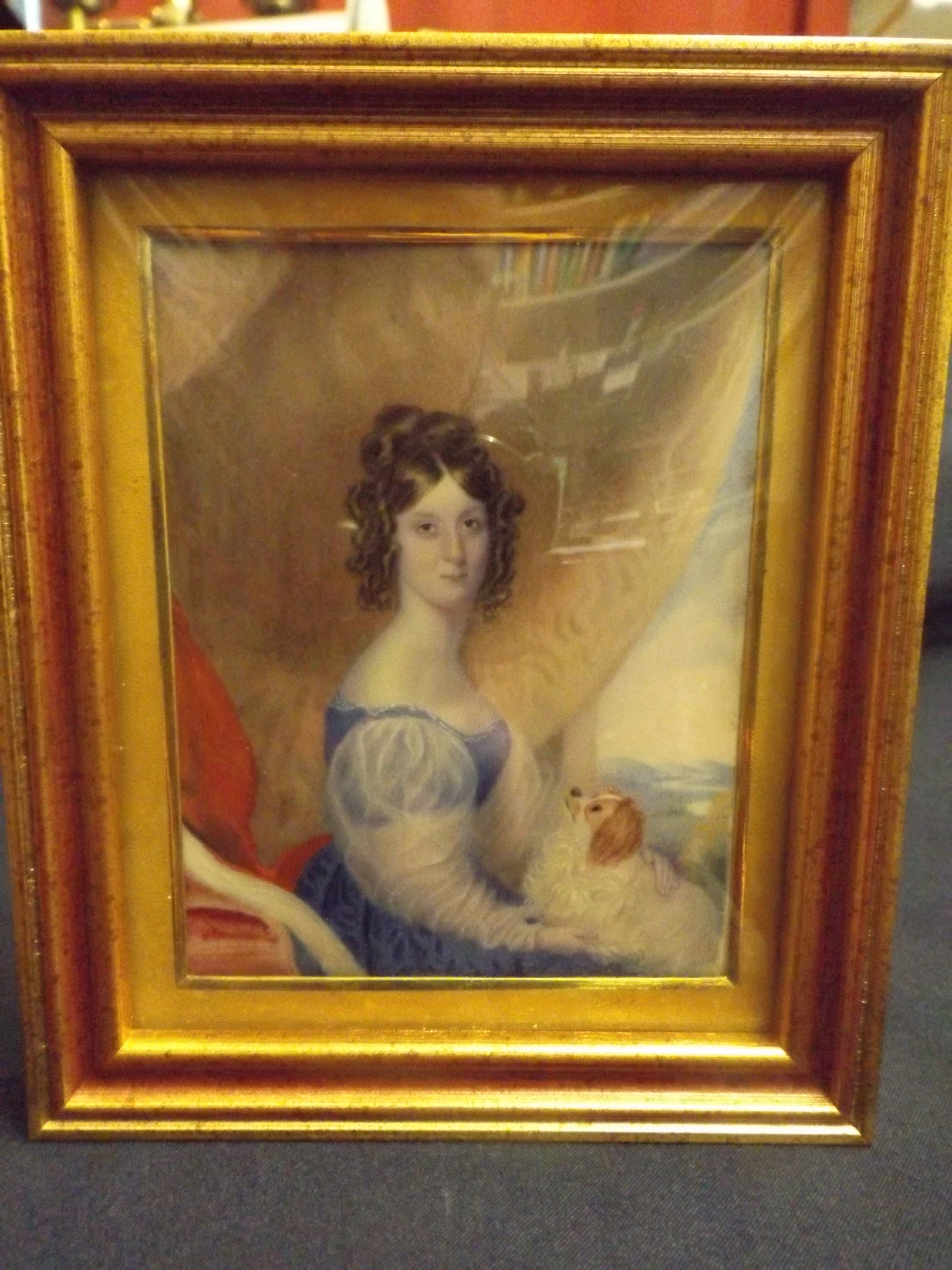 Large Miniature Portrait Young Lady with Spaniel