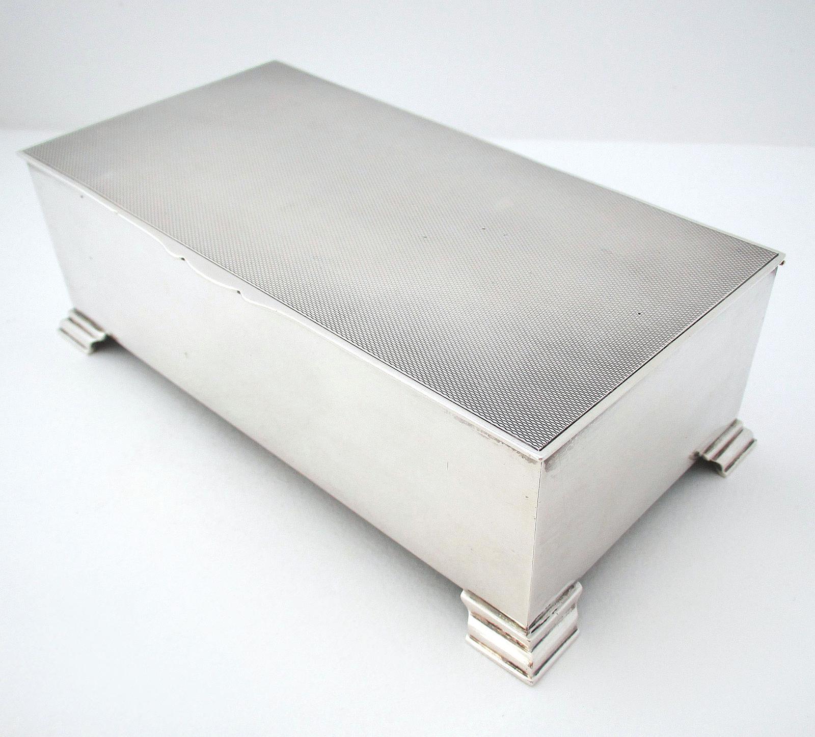 Large Minimalist Mid 20th Century English Vintage Sterling Silver Table Cigarette Box Trinket Jewelry Case